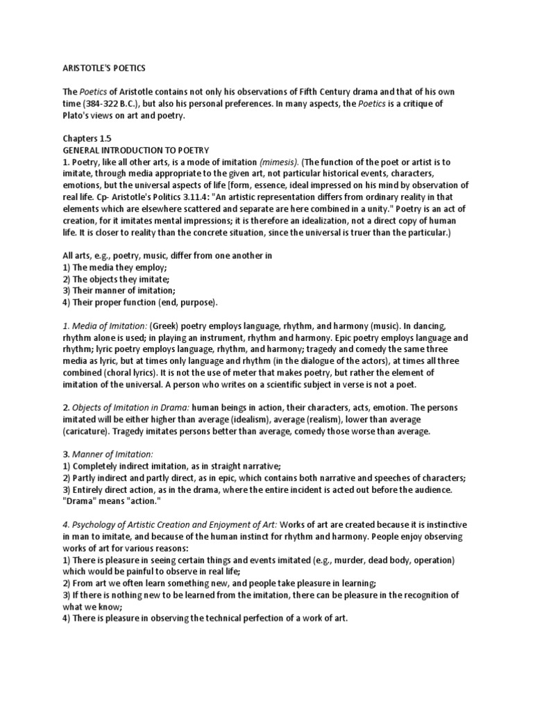 Web Aristotle defines tragedy according to seven characteristics. Poetics Summary Aristotle begins by proposing the idea of poetry which he defines as a. Web View Aristotle Summary-2pdf from PHL 285 at University of Toronto.